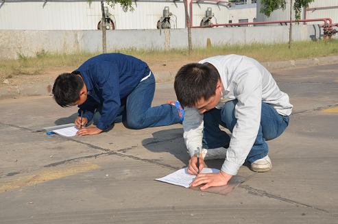 參賽員工按班分為四組,每組4人進(jìn)行接力賽跑。這并不是普通的接力賽跑,其中還包括知識(shí)競(jìng)答。